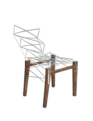 The final result from the project set by Dick van Hoff, the 1 = 2 chairs. The brief was to take an old chair apart and rebuild the structure with 6mm rod. In the first chair I built a support structure replacing the legs, and in the second chair I replaced the seat and back.