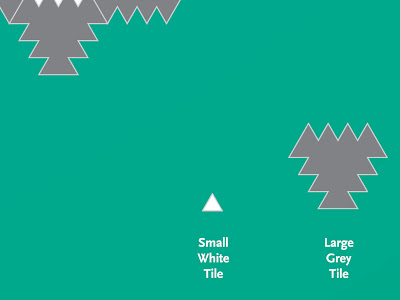 These images show a diagrams for a 2-dimensional architectural tiling system. The system works with 2 tiles, a larger triangle edged primary tile, and a smaller triangle shaped filler tile. By changing the arrangement of the larger tile one can produce a very large number of tiling patterns, with the filler tile used to complete the arrangement and produce a tessellation.